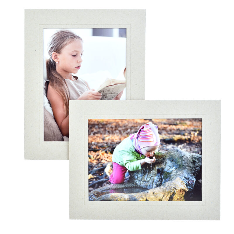 Eco Grey Raw Board Strut Mounts – something alternative and new – strut mounts in unbleached eco-friendly raw board. These mounts will really appeal to the young and trendy wanting a different yet still stylish approach to print presentation. A blind embossed key line