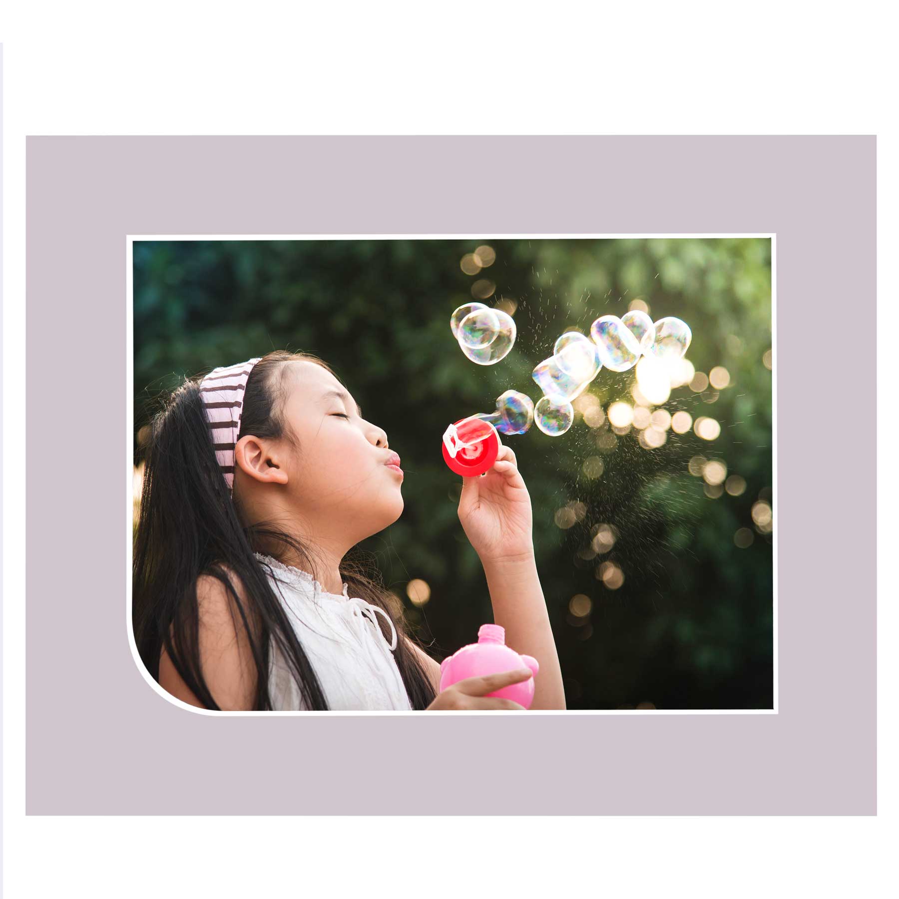 Haven Single Curve Bevelled Grey Photo Mounts – quality handmade slip-in mount with a pleasing single curved aperture corner and a white bevelled edge around the aperture. Available in single quantities.