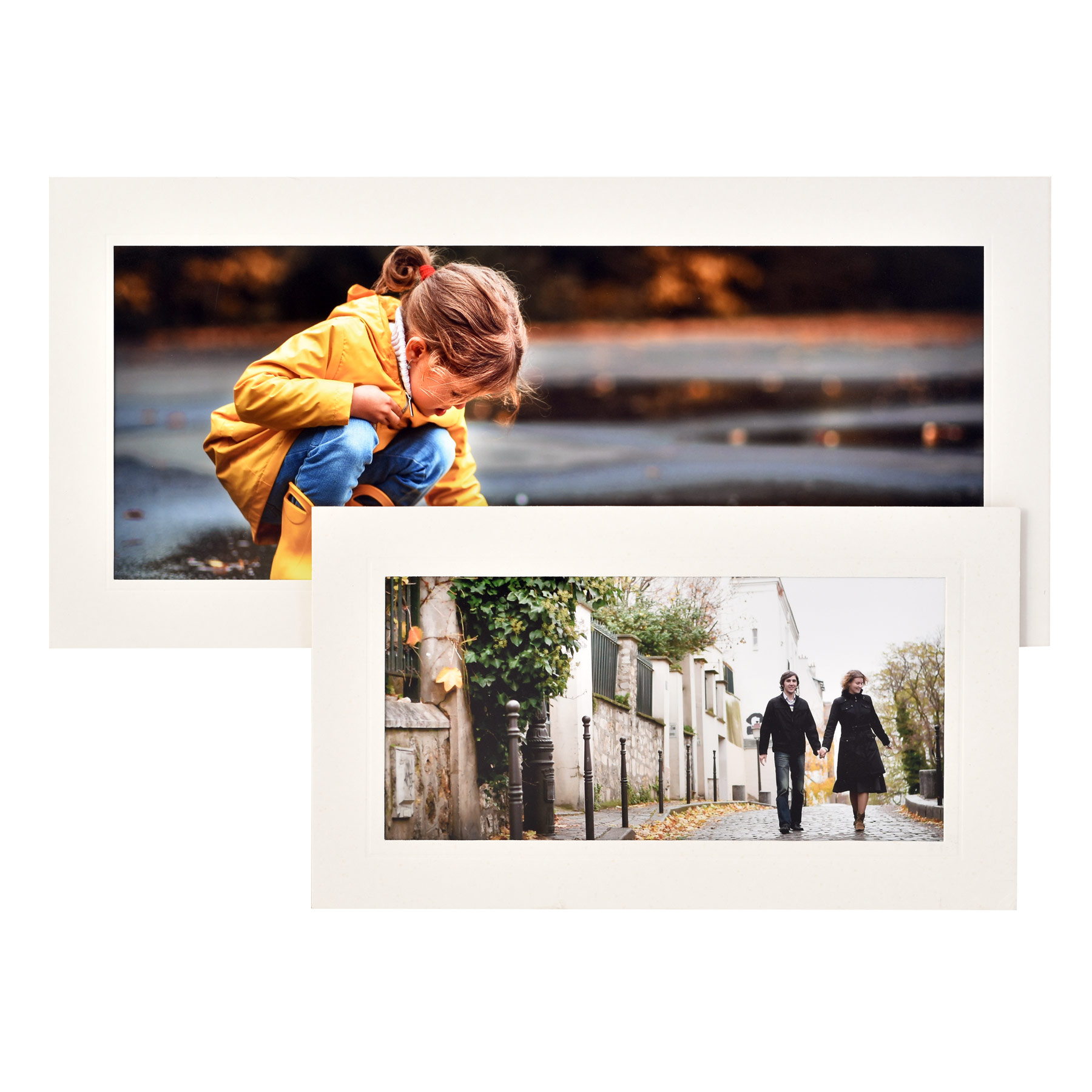 Ivory Panoramic Photo Strut Mounts, a soft white strut mount with a single blind embossed line around the aperture.