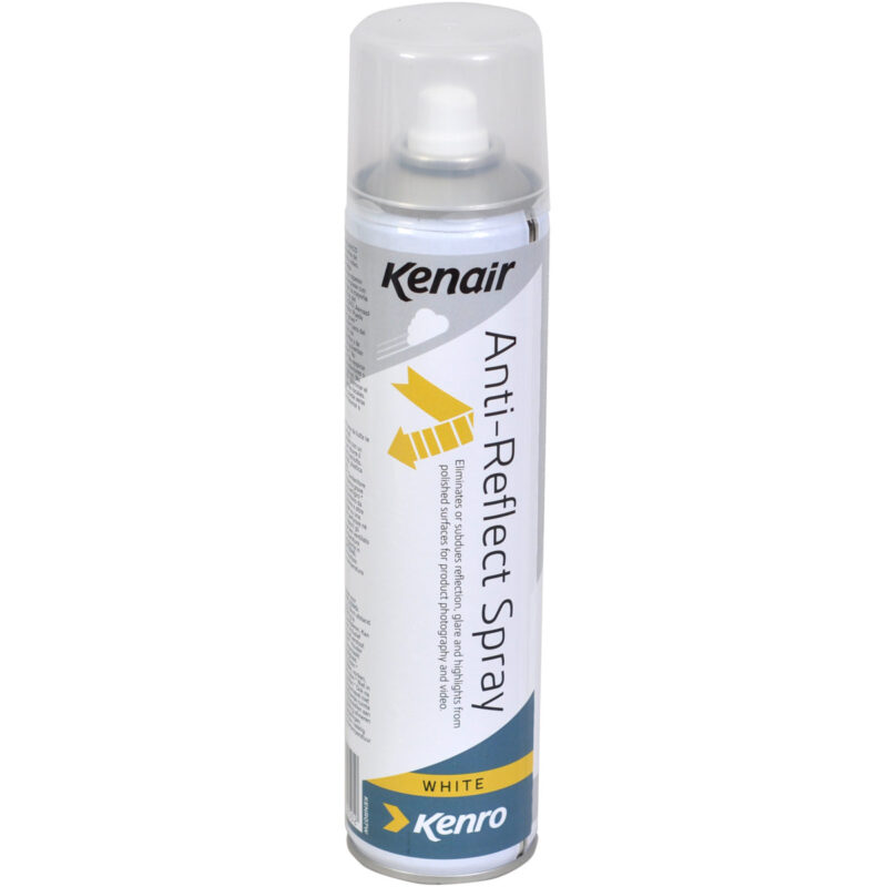 Kenair Anti-Reflect spray reduces reflections and glare in product photography and is specifically for white reflective surfaces.