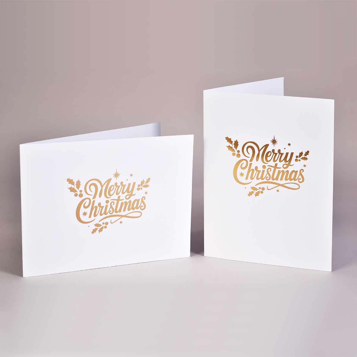 Merry Christmas White Photo Folders – Christmas folders foiled in gold and using our quality Maple medium weight white cut corner photo folders.