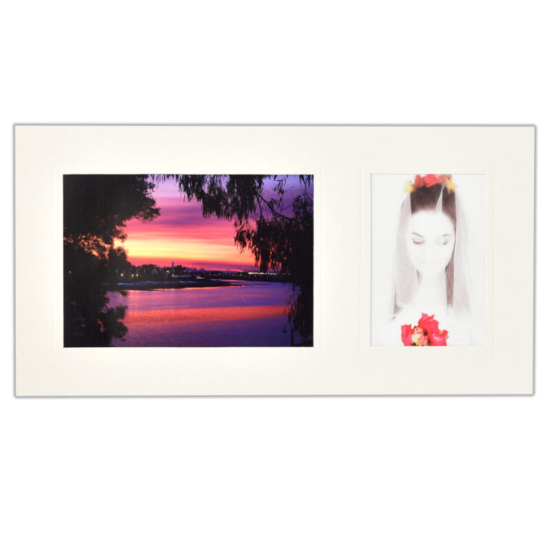 Vanilla Ice Photo Strut Mount 7″ x 5″ + 5″ x 3.5″ – ideal for groups, presentations, club events, etc. Blind embossed line around the apertures.